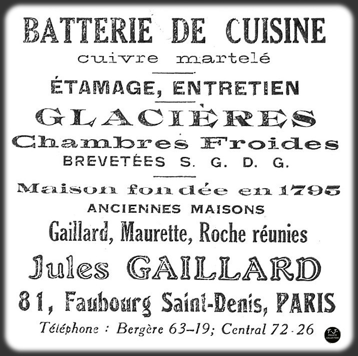 "Les Cuivres de Cuisine, Volume 2, La Maison GAILLARD PARIS"