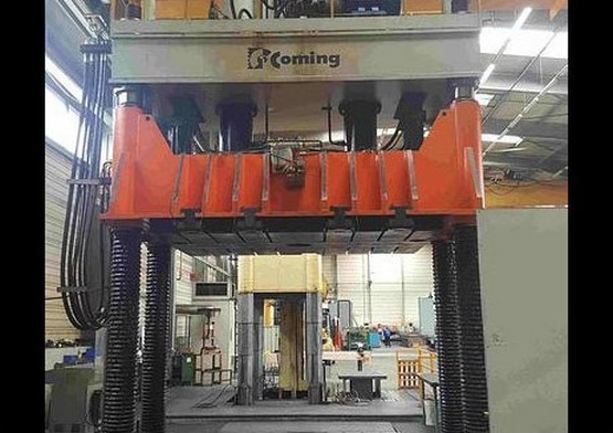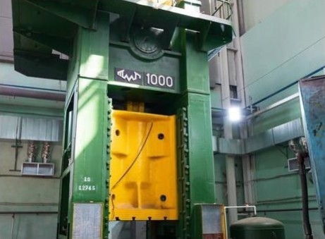 A présent, si nous allons regarder des machines modernes, nous pouvons trouver des emboutisseuses ou des presses qui développent comme ici, une machine qui pèse 80 tonnes, 75kw de puissance pouvant exercer une pression de 1000 tonnes. Soit l'équivalent d'environ 100 chevaux (chevaux vapeur) :