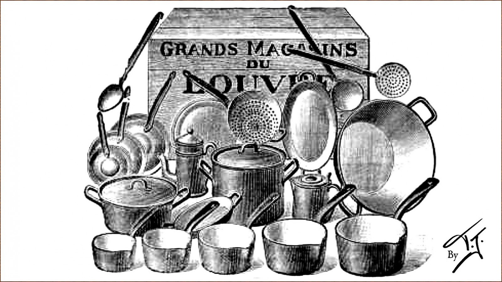 Au début des années 1900, pour le même prix qu'une casserole en cuivre extra-forte de 30cm (30 francs), vous pouviez avoir une batterie de cuisine émaillée complète dans une jolie caisse en bois.